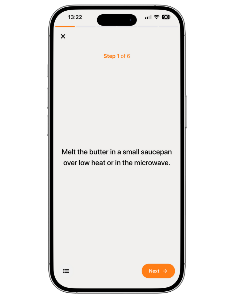 Follow each instruction with large text, smooth navigation, and a distraction-free layout designed for real cooking moments.